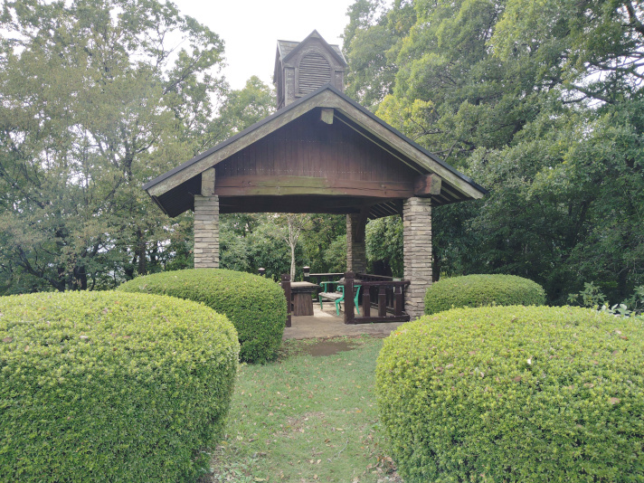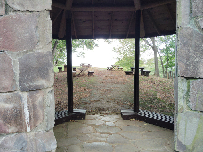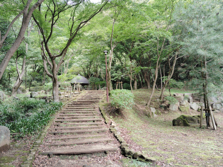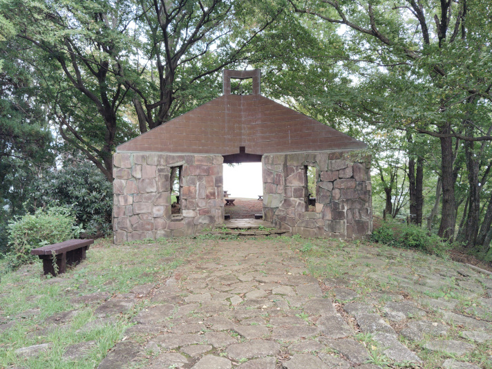 そのわきを通っていくと、自然の中を歩いていく道があり、その先に東屋がありました。その奥を登っていくと “野外ステージ” に出ます。