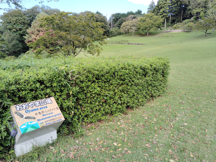 そして、”おおやま広場” にたどり着きました。左上の写真の奥に見えている山が “大山” です。ここは開放感のある芝生の広場で、東屋もありました。日差しが心地よくて、ここで昼食にすればよかったなと😁