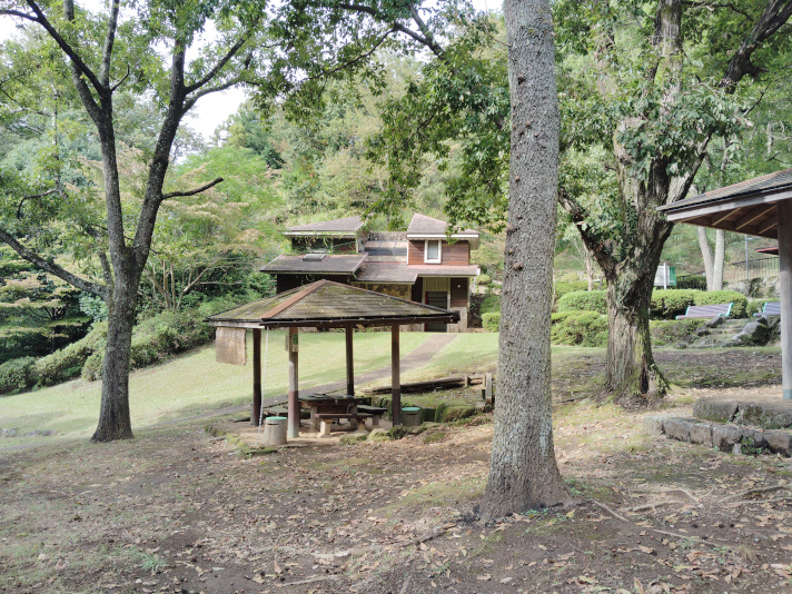 左の写真の左奥、右の写真の奥に見えている建物が公園管理棟です。